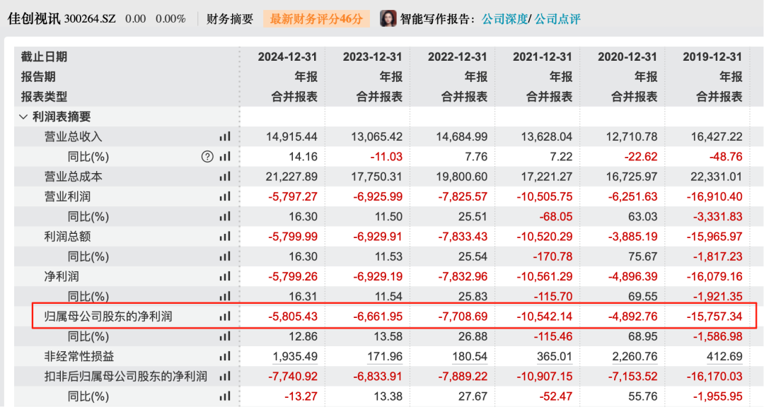 业务方面,佳创视讯主营涵盖软件家具及处理决策、系统集成及就业、游戏及云就业、VR业务家具及就业等多个板块。比年来,受行业竞争加重及新业务战术插足等身分影响,公司事迹承压,2019年至2024年已衔接6年堕入亏空。